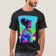 I give wanted to give this a 4 instead of a 5 because these Basic DARK T0shirts run unexpectedly SLIM or Narrow. Which is great if you do not have a potbelly, but I have a paunch. It isn't the shirt's fault that I've got a beer belly. The design and shirt itself is a quality cotton shirt. The color is more of a deep purple, but still a very pretty color. The Basic DARK T-shirts run a bit SLIMMER than the Basic Ts. The neck is a fraction narrower (or seems to be narrower) also. I'm a paunchy middle-aged woman and my neck is 12 inches (31cm) thick and the neckline fell about the same as in the photo of the man, and I had the desire to tug it a bit. So if you're a thick necked man or like loose shirts, be aware these are slimmer shirts. Once I get rid of my lockdown paunch it'll look great. The shirt washed well in cold water with no apparent bleeding. We don't have a dryer, so it hung dry. Did not shrink. Love the colors and the design. The design looks smaller on my shirt than it does on the model on-line. But still, it looks good on the shirt. The printing looks as it does on the model, just the size seems fractionally smaller. Washed garment in cold water, hung dry and design appeared unaffected.