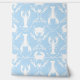 Lobster and Crab in Cornflower Blue and White Wallpaper