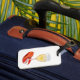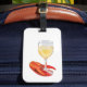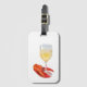 Luggage Tag featuring an illustration of a lobster claw around the stem of a white wine glass. Tag has a sleeve for an information card on the other side. Artwork copyright: Dominic A. White. All rights reserved.