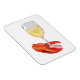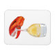 Flexible magnet featuring an illustration of a lobster claw around the stem of a white wine glass. Artwork: Colour pencil. Artwork copyright: Dominic A. White. All rights reserved.