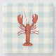 Lobster Blue Gingham Check Coastal Stone Coaster