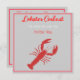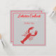 Lobster cookout invitation with a red graphic lobster( from Zazzle fonts).Invitation template by Alma Wad. Customise it with the details of your own lobster party .
