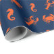 Lobster crab seahorse navy orange pattern coastal wrapping paper