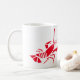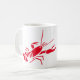 Coffee mug is shown in the classic white style with a cute red lobsters print.