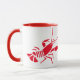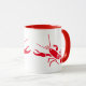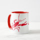 Coffee Mug is shown in a red and white two-tone design with red lobster's detail.