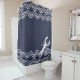 Lobster navy blue and white shower curtain