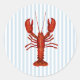 Lobster Painting Nautical Blue Stripe Coastal Classic Round Sticker