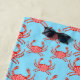 Playful lobster-patterned towel, featuring a vibrant sea blue backdrop.