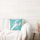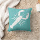 part of the ocean themed decor LOBSTER WHITE on teal blue pillow on one side and teal and white strip on back.