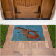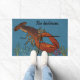 Welcome guests to your home in style with this doormat. It features a realistic style illustration of a lobster in the sea with seaweed and coral accents, and is ready to be personalised with a name in black script lettering.