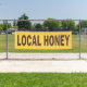 Local Honey sign banner for honey vendors or beekeepers to get attention to your roadside booth , farmers market booth, or farm entrance. Brown type on a yellow gold background.