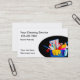 Local house cleaning service business card template with graphic emblem with cleaning supplies in the background and simple layout.