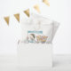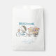 Send guests home with a smile using this adorable blue-accented baby shower favour bag. Featuring a watercolor hedgehog pedaling a bike cart filled with wildflowers and a “Locally Grown” banner, it’s a sweet fit for a rustic or spring baby shower theme.
