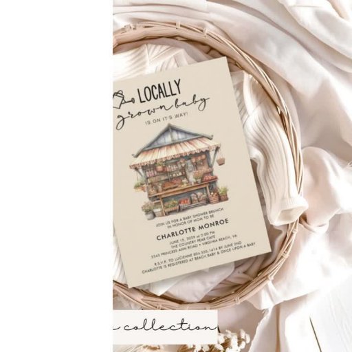 Locally Grown Farmer's Market Baby Shower Napkin - featuring a watercolor, farmer's market product stand with hand lettered typography and green gingham on the back of the invitation. Great for a gender neutral baby shower.