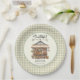 Locally Grown Farmer's Market Baby Shower Paper Plates - featuring a watercolor, farmer's market product stand with hand lettered typography and green gingham on the back of the invitation. Great for a gender neutral baby shower.