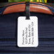This was purchased as part of a 40th Birthday present for my nephew who is going to Vegas. It is made of high quality, very study and we decided only to put his name on the back of the tag, but you can add a full address if you so wish.