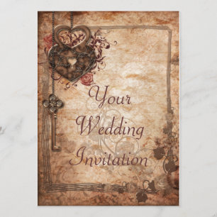 Rustic Vintage Key and Lock Wedding Invitation