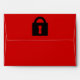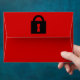 A lock symbol in black. This black illustration depicts a padlock with a keyhole. This lock symbol is on a bright red colour background.