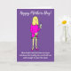 Funny Cartoon of a woman who hasn't had her hair cut since lockdown began clutching a bottle of wine and a wine glass to celebrate her birthday. Caption reads 'Happy Mother's Day' and 'Mum hadn't had her hair cut since lockdown but luckily see could still see well enough to pour the wine'. Easily personalise this card by editing the template text. Thank you for viewing my cartoon designs!