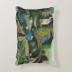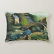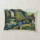 The cushion is small to medium sized. It can be washed. It is well constructed. The material used is pleasant and feels decent quality. It has a very slight plush feel which is good. It is well labelled and its care clearly stated. Theres nothing not to like about it. All in all a good item. The deduction of one star overall is due to long delays in delivery to the UK. It's not clear if this was due to Zazzle or somewhere else in the chain as I did not receive status updates of dispatch or progress. I cannot comment anymore on that other than to say that was our experience but it may not be the same for you. The printing was surprisingly close to what we were expecting. Its an art piece and on material so its hard to assess the precision of printing but it seems close to the original. The soft lines are reproductions of the original. The colour is a fair reflection of the painting. This was printed in the US and it looks like US quality. No issues.