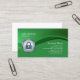 This locksmith business card features a grey glossy padlock icon over an abstract green wavy background. Perfect for businesses related to security or locksmith themes. Customise this card immediately with your name and details.
