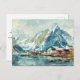 Explore the breathtaking Lofoten Islands with this retro travel poster/postcard. Featuring dramatic peaks, fjords, and the Northern Lights, this design captures the beauty of Norway. Perfect for nature lovers and fans of vintage style.