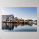 Landscape photograph of traditional norwegian houses in a fishing village at the coast of Lofoten, northern Norway.