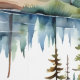If you love trees, log cabins and camping, here is the perfect peel and stick wallpaper for you. Watercolor illustration of log cabins in the pine trees.