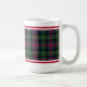 Coffee mug with the tartan for Clan Logan and its septs. Navy blue, green, and black Scottish plaid pattern from 1831, with bright red and yellow accents.