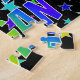 This lively and exciting birthday-themed jigsaw puzzle design features the message "HAPPY BIRTHDAY, LOGAN" with the characters having a colorful rainbow spectrum inspired gradient pattern, along with a vibrant star field background pattern. A colorful puzzle like this might be used to send birthday greetings to somebody named Logan. [~Z0000468]