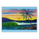 Suzanne M Art blank inside folded card. Picture on the front is of the Seawall in Lahaina town. The view is of a palm tree and a summer time sunset between the islands of Lana'i on the left and Moloka'i on the right