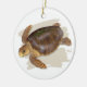 The ornament's front and back design features a realistic loggerhead sea turtle drawn from living turtles by wildlife artist Dawn Witherington. Dawn's personal encounters with sea turtles has lent realistic detail to her art.