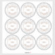 A handy sheet of 9 round stickers, each approximately 4.5 inches in diameter, to say Thank You on a giveaway, favour or gift from your business for either staff or delegates. Each of the 9 stickers can be personalised with a different staff member's name or delegate name. You can also easily swap in your business logo and company website address both of which will update simultaneously on all nine.