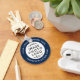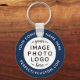 Logo and custom text blue white round keychain