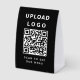 A simple, modern minimalist black paper table tent that can be easily customized with your company logo, QR code, and custom text. The perfect choice for restaurants, cafés, hospitality, or any business!