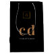 Black background, golden and white text. Personalise and add your logo, monogram initials and name.