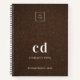 Brown faux leather photo as background and white text. Personalise and add your logo, monogram initials, name and a title year (any year). Your logo both on the front and the back. Space for your website address on the back.