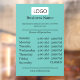 If your logo is not sized properly go into "personalise this" then "edit using design tool" then click on the logo and hold down the shift key while you resize it. Please feel free to contact me and I'll do my best to help you. This window cling is a great tool to let your customers know your hours of operations. Simple stream-line designed teal window cling.