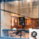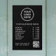 Modern black window cling sign for your business. Upload your logo and QR code for customers to scan for a list of your products, services, prices or other information. Add your business name, hours of operation or other text in simple white typography.