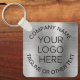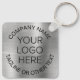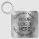 Promotional keychain for your business or organisation featuring a brushed silver faux metallic background. Upload your logo and customise with your company or organisation name and a slogan, tagline or other line of text.