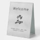 A classic faux silver looking background, black coloured text. With the text: Welcome on the front and Closed on the back. Personalise and add your business logo and text.