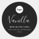 Custom logo candle label minimalist black Sticker. Personalise this candle product label template with branding, scent type and product details.