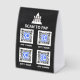 Create your own business logo personalized 4 x 6 paper table tents with up to 4 QR Code images for simple Scan To Pay for your customers. On the front, there are four image templates with titles for the names of the apps you accept, all on a faux black chalkboard background with white lettering. On the back is a virtual blank canvas where you can do a quick desserts list or tell the history of your company or perhaps awards your business has won in the community. If you only accept 3 apps, then upload a photo of your goods or services in one of the app slots to keep the balance of the design. Keep things organized and easy for your customers and yourself with these custom Scan To Pay QR Code paper table tents created just the way you want them and with the trendy look of black chalkboard.
