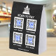 Create your own trendy blackboard look business logo personalized 5 x 7 paper table tents with up to 8 QR Code images for Scan To Pay. With so many ways to pay with just the scan of a phone, more QR slots makes sense. There are four QR image templates with titles below each for the names of the apps on the front and another four on the back, all on a faux black chalkboard background. If you only accept 6, then upload photos of your goods or services in two of the app slots. Simple white text at the bottom can be used to add your website, company name or hours of operation etc. Keep things organized and simple for your customers and yourself with custom Scan To Pay QR Code paper table tents created just the way you want with the casual look of black chalkboard.