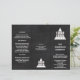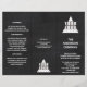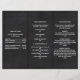 Use this tri-fold price list brochure template in faux black chalkboard to design your own menu of goods and services to market your business to prospective customers. The simple black and white blackboard layout includes two picture image templates for uploading your logo, or a photo if you prefer, to perfectly promote your business. Text templates on both sides of this trifold brochure in a classic white font on the rustic faux chalkboard background with thin black borders makes it easy to customise this price list design exactly how you want it. The beauty of this simple design is you can personalise depending on your business. If you own a restaurant or bar, you can create a pamphlet price list menu with your company logo for use on site and to tuck into take out order bags. The versatile layout is perfect for service companies who will use this price brochure template to advertise goods and services, with prices, anywhere from in-house to leaving with customers during estimate meetings or to advertise during trade shows. ***NOTE: THESE PRICE LIST BROCHURES DO NOT SHIP PRE-FOLDED. You will need to fold these faux chalkboard brochures yourself, but as every small business knows, that's what friends and family are for!