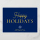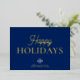 Send elegant holiday greetings to clients, employees, and business partners with this sophisticated simple minimalist corporate Happy Holidays card. Featuring genuine gold foil “Happy Holidays” text on a customisable navy blue background, this design exudes both style and professionalism. Personalise with your custom logo and add your holiday message on both sides. The navy blue background is easily changeable to suit your brand colours, and the gold foil can be switched to rose gold or silver for a unique touch. This card is set as a convenient online template, allowing seamless customisation to create the perfect seasonal message for your office and professional network.