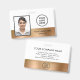Minimal, elegant and chic employee photo ID badge with a gold faux metallic strip. Customise the front with your logo, employee photo name and job title. On the reverse, add your company name and other information.