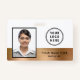 Minimal, elegant and chic employee photo ID badge with a gold faux metallic strip. Customise the front with your logo, employee photo name and job title. On the reverse, add your company name and other information.