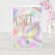 Stylish modern holographic pastel colours Business Happy Birthday Greeting Card featuring simulation of faux gold glitter hand lettering text. Please note that the holographic, gold and glitter effect in this design is a flat colour print and is not an actual holographic and gold metalic foil nor it is glitter. Change the "your logo here" image with your logo or remove it if you want to use it without a logo. Don’t forget to customise the front side and inside text as well.