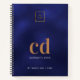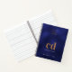 A navy blue background, golden and white text. The blue colour is uneven. Personalise and add your logo, monogram initials, name and a title. Your logo both on the front and the back. Space for your website address on the back.